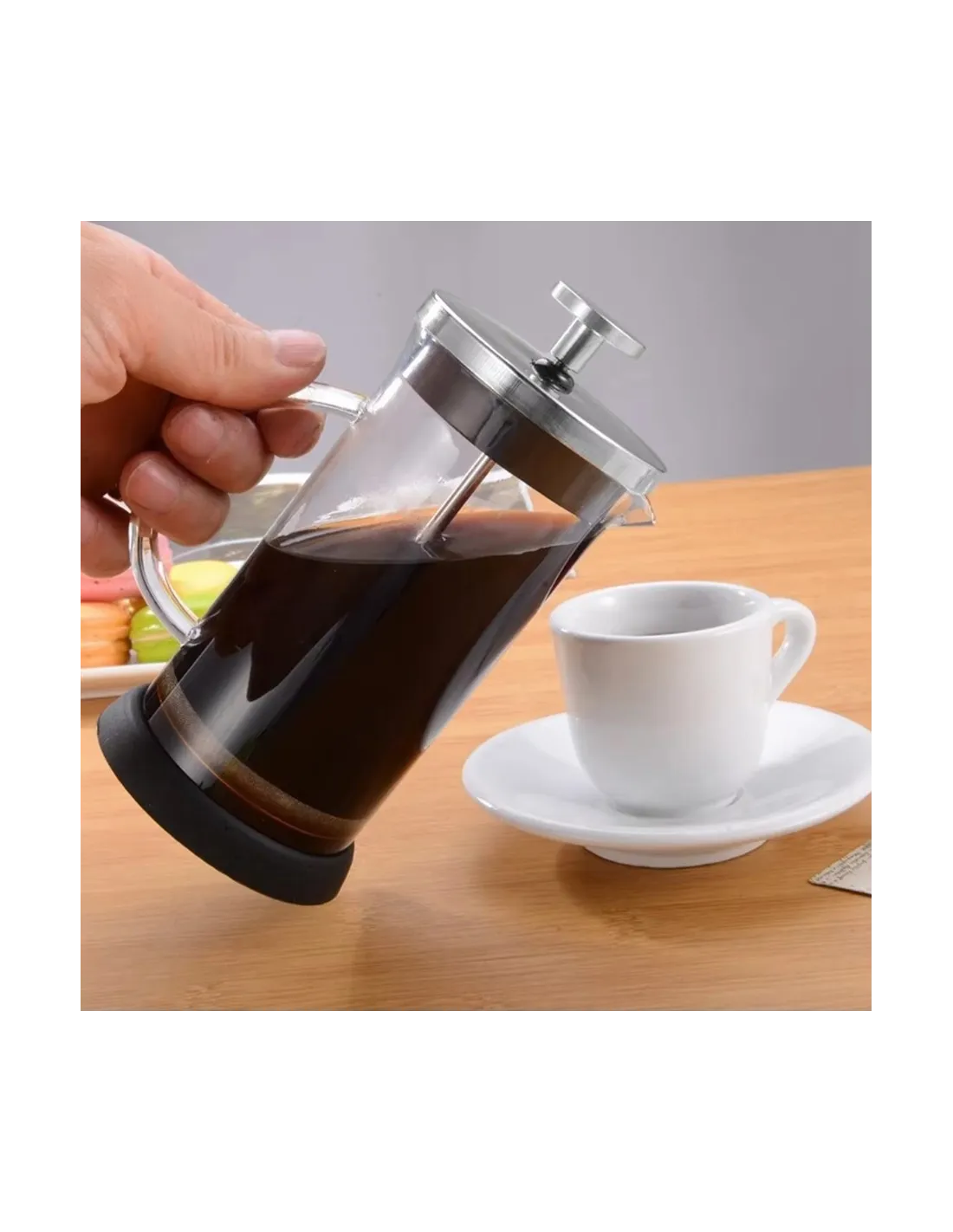 Pregătirea cafelei în oala french press este foarte ușoară și rapidă. Băutura rezultată iese în evidență prin corpul său plin. Puteți afla mai multe despre această metodă de preparare a cafelei în secțiunea noastră Pregătirea cafelei din presa franceză!
