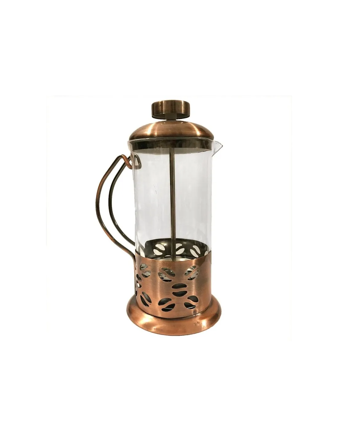 Aparat elegant de cafea cu presă franceză din oțel inoxidabil, cu finisaj din cupru. O metodă simplă și populară de preparare a unei cafele de calitate.