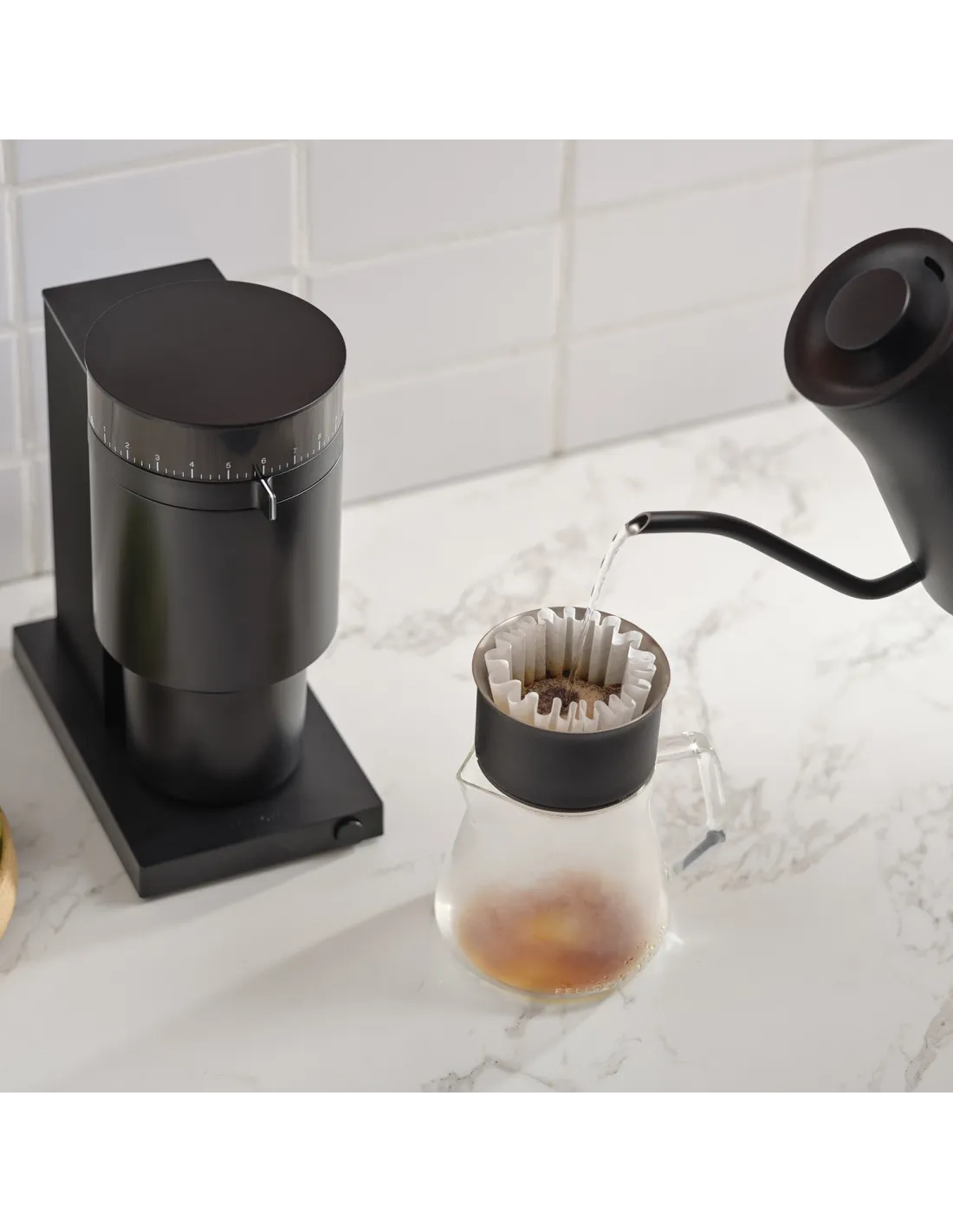 Moara electrică puternică și versatilă Fellow Opus, care poate prepara cafea pentru toate tipurile de preparare, de la espresso adevărat la cea mai grosieră cafea rece.