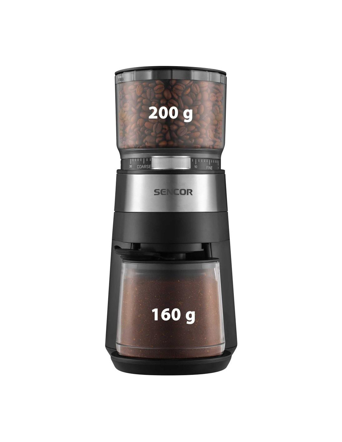 Capacitatea recipientului pentru boabe: 200 g