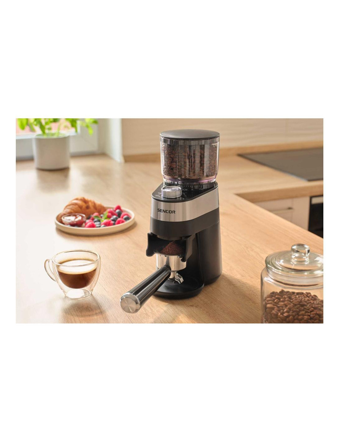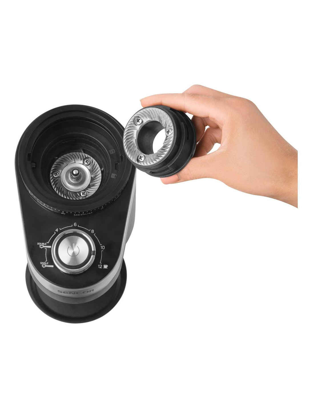 Moara electrică de cafea Sencor SCG 5060BK cu pietre de măcinat din oțel plat garantează o măcinare rapidă, uniformă și precisă. Acesta oferă 30 de niveluri de grosime, un buncăr de cafea de 200 g, dozare automată pentru 1-12 cești și opțiunea de măcinare directă în portafilter. O alegere excelentă pentru toți iubitorii de cafea proaspăt măcinată.