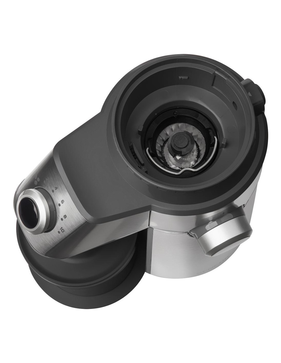 Măcinatorul are un selector rotativ de porție pentru 2-10 cești și o funcție de oprire automată atunci când măcinarea este completă. Datorită cutiei de viteze planetare, funcționarea sa este extrem de silențioasă și lină, ceea ce veți aprecia în special atunci când preparați cafeaua dimineața.