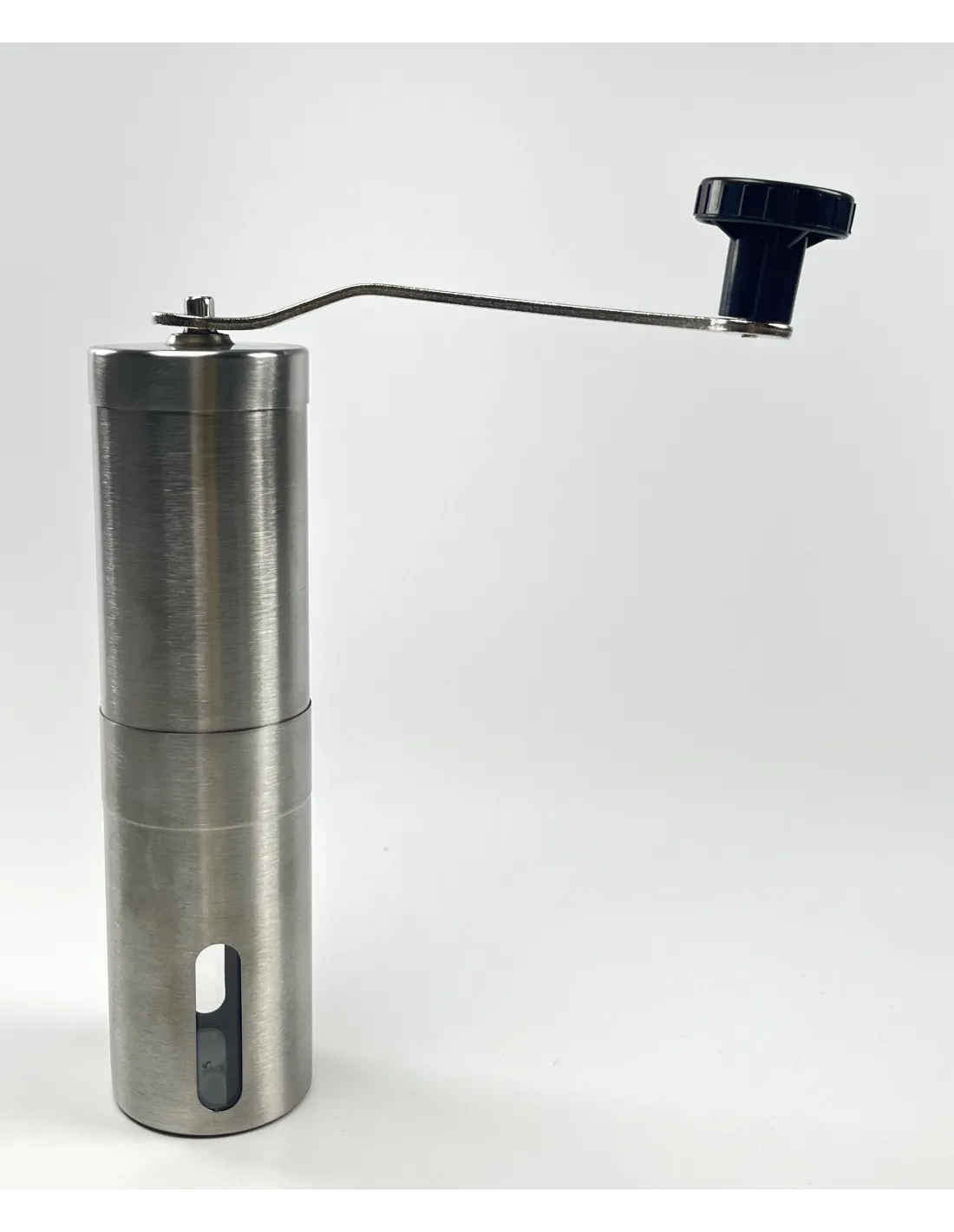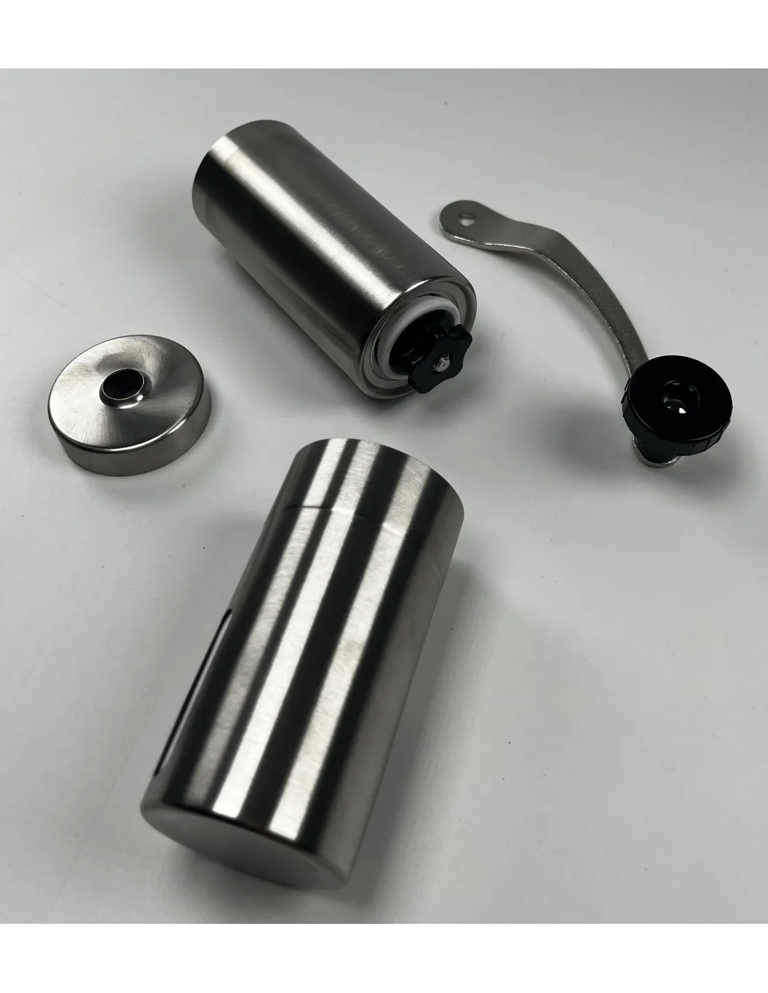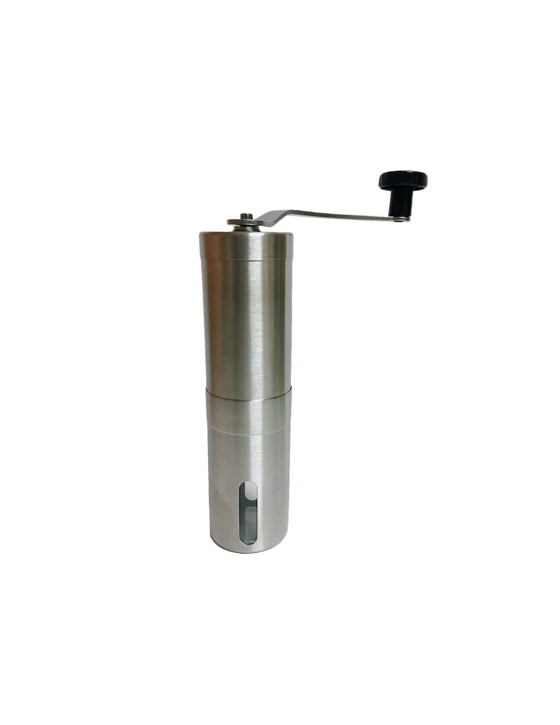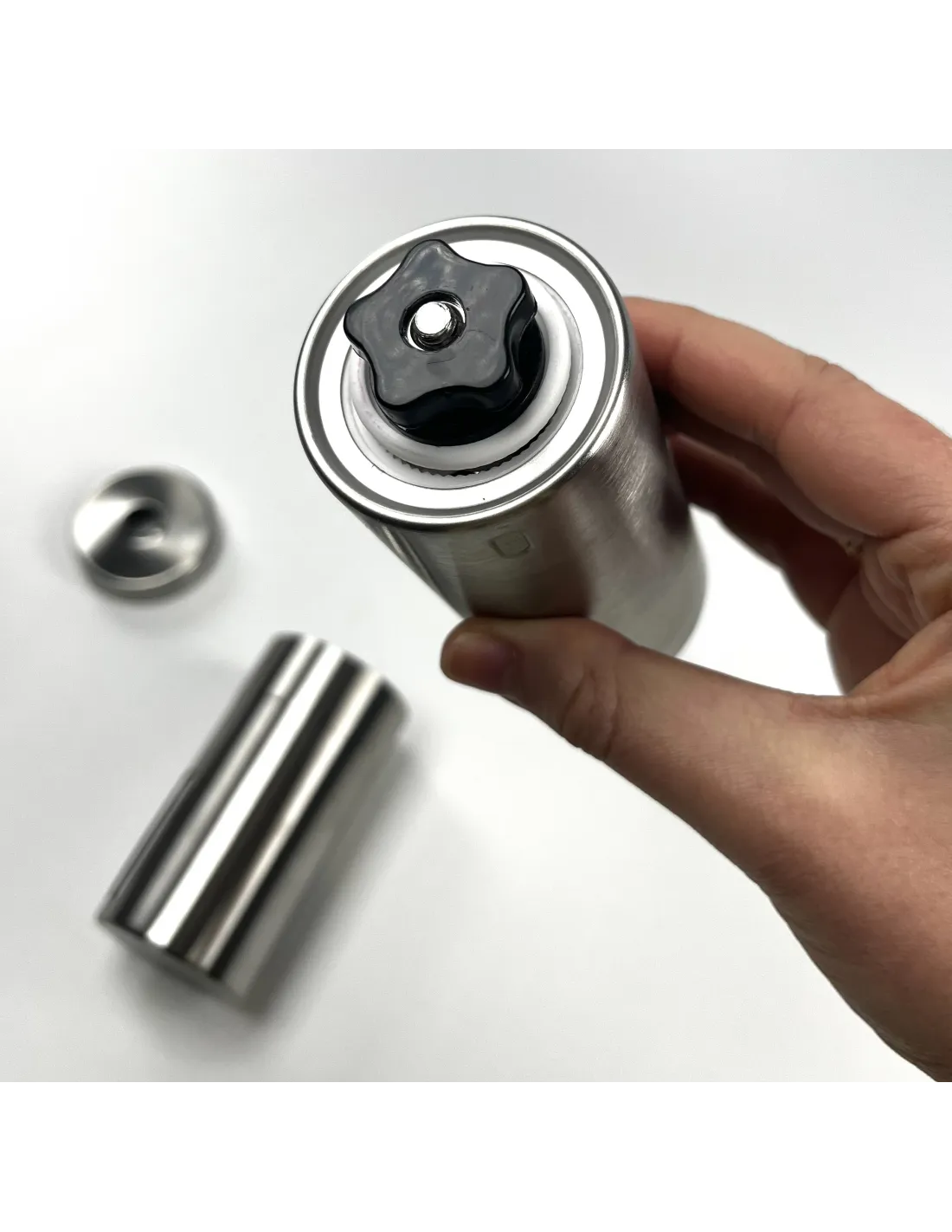 Mașină de tocat manuală elegantă Kaffia Tall dinoțel inoxidabil, cu pietre de măcinat ceramice pentru o măcinare rapidă și confortabilă chiar și în deplasare.