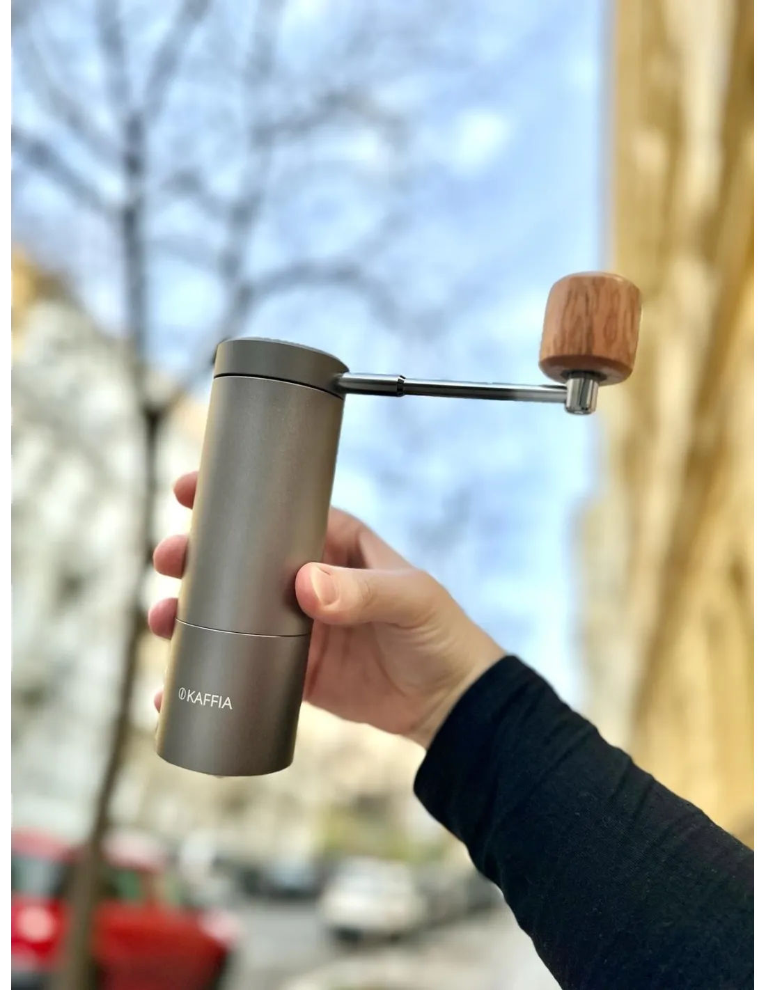 Râșnița Kaffia Barista X construit cu precizie, cu pietre de măcinat și rulmenți din oțel, concurează cu mărci precum Timemore, dar la jumătate din preț. Al doilea cel mai bine vândut grinder manual, conform Heureka.cz.