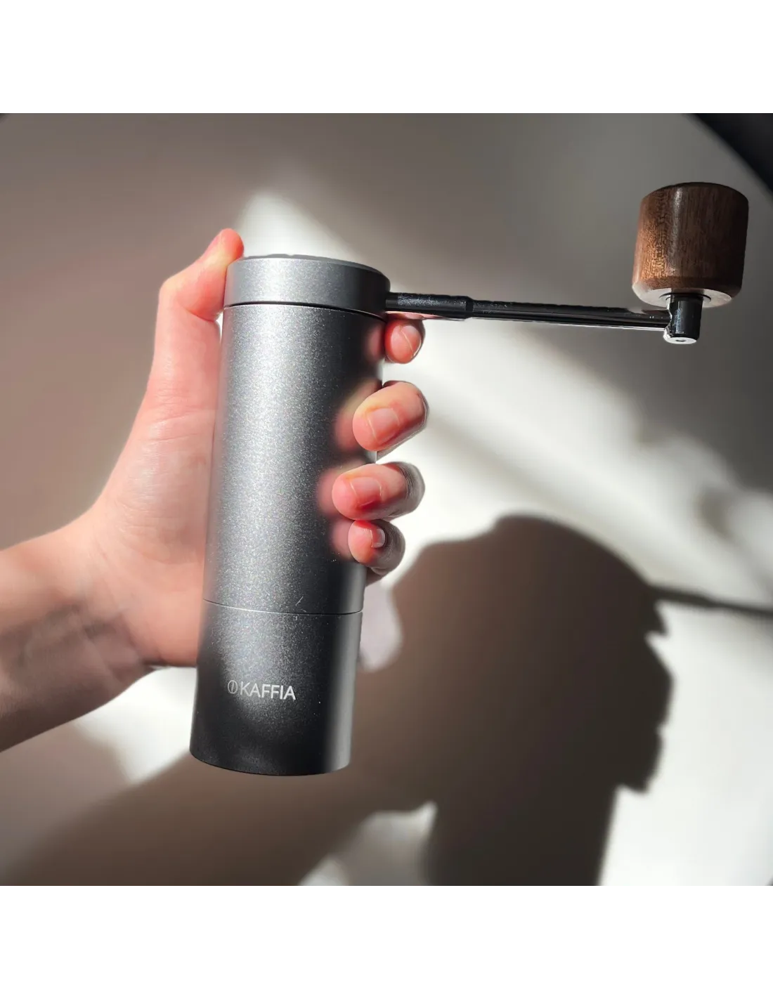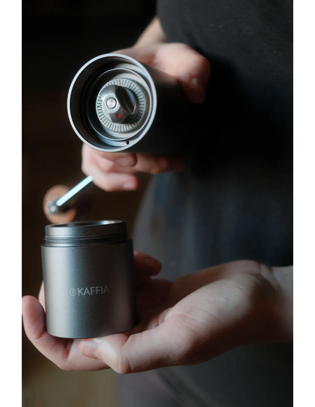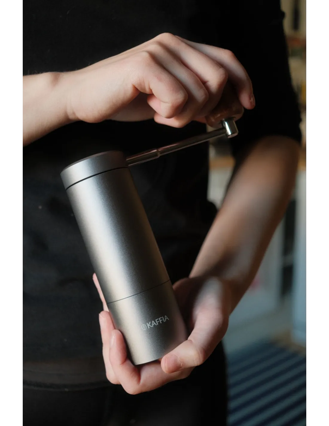 Râșnița Kaffia Barista X este succesorul râșniței de succes Barista. Dar acum cu un design îmbunătățit și o greutate mai mică. Este fabricat din aluminiu, ceea ce îl face atât ușor, cât și durabil. Datorită pietrelor din oțel inoxidabil de precizie 420, măcinarea este mai bună decât la râșnițăele cu pietre ceramice, cum ar fi cele de la Hario, Porlex sau Rhinoware. Râșnița are un mâner relativ mai lung, ceea ce face, de asemenea, ca măcinarea să fie mai ușoară.