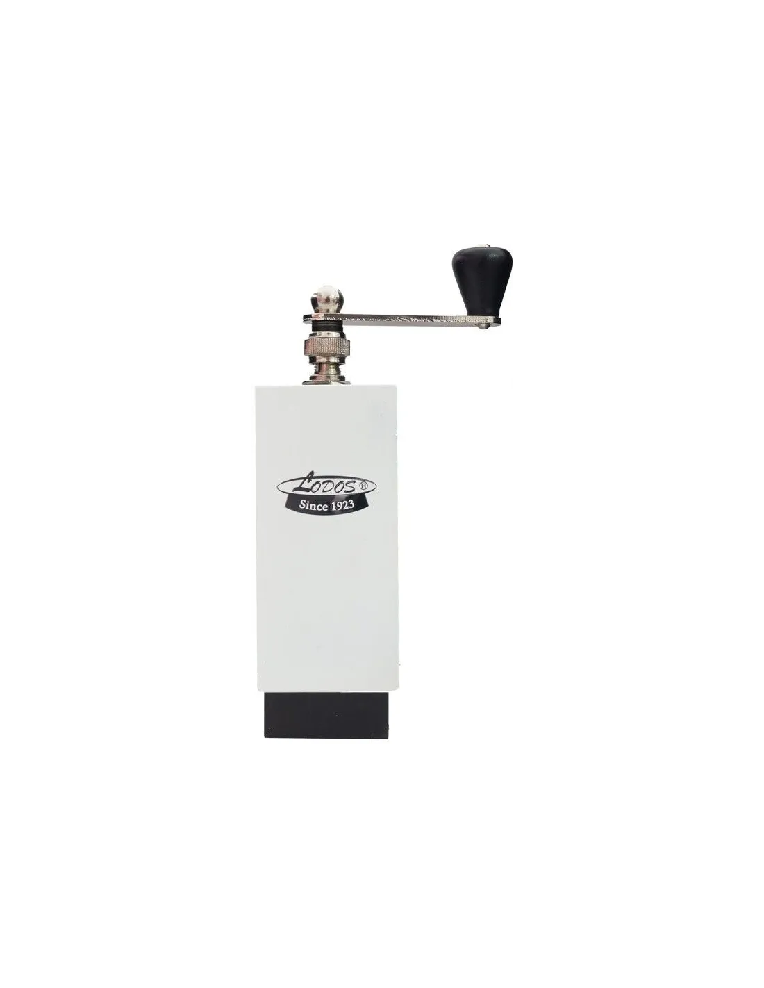 O frumoasă râșniță de cafea manuală albă, cu pietre de măcinat, care, datorită dimensiunilor sale mai mici, este potrivită și pentru călătorii. Sertarul poate conține până la 30 g de cafea măcinată.
