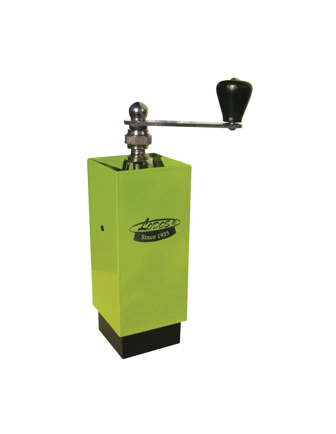 O frumoasă râșniță de cafea manuală verde, cu pietre de măcinat, care este potrivită și pentru călătorii datorită dimensiunilor sale mai mici. Sertarul poate conține până la 30 g de cafea măcinată.