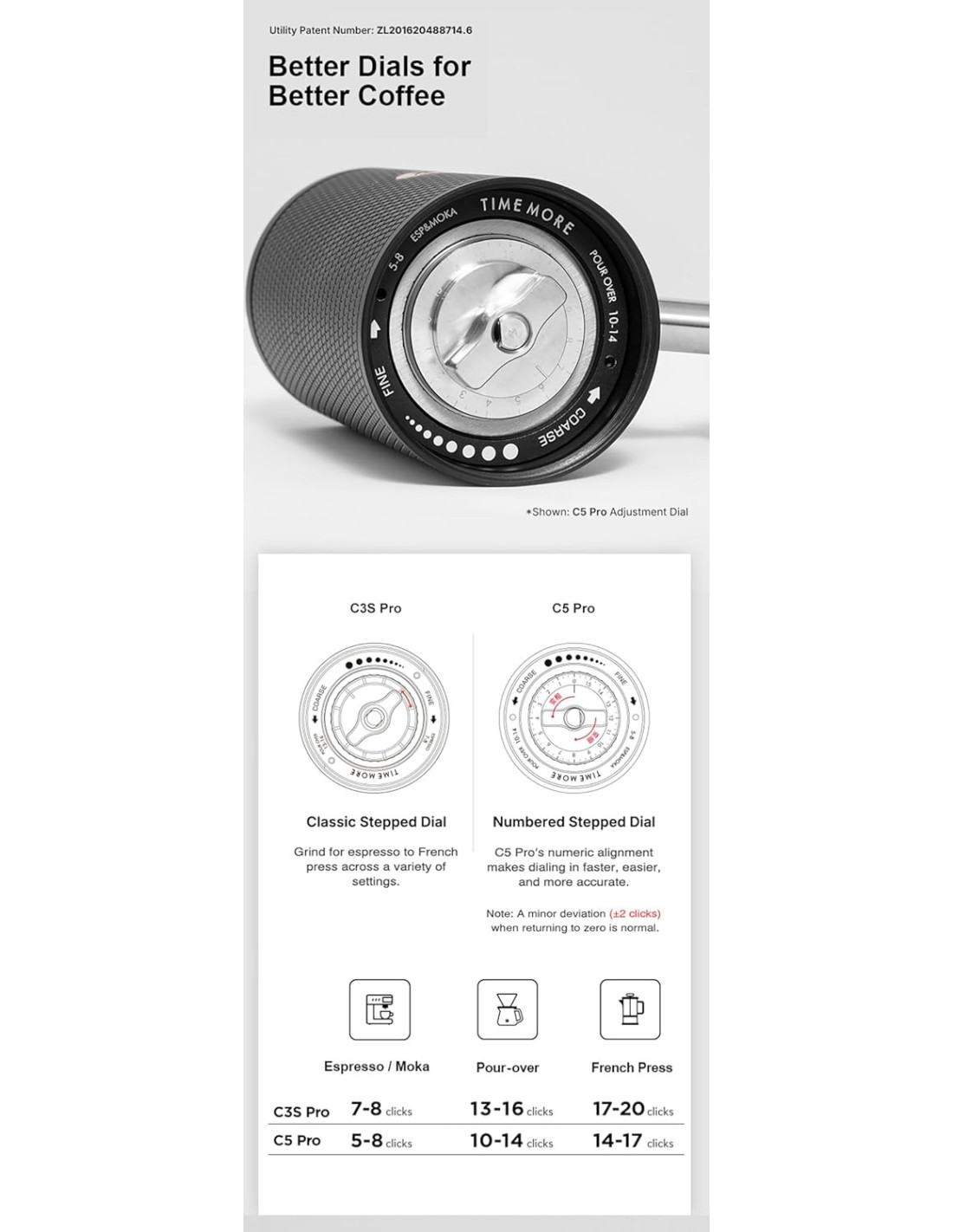 Timemore C5 Pro Black este un măcinător de mână pentru iubitorii de cafea exigenți care doresc precizie, viteză și durabilitate într-un design elegant. Ideal pentru utilizarea zilnică acasă și în deplasare.
