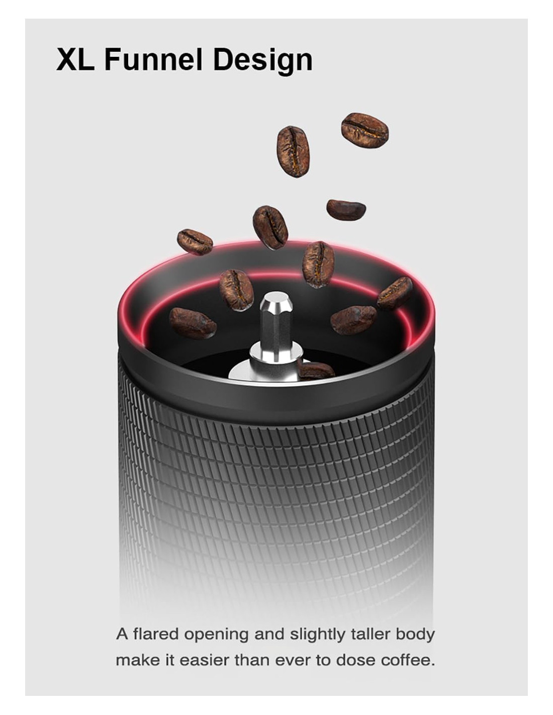 Cu un diametru de 5,3 cm și o înălțime de 17,2 cm, râșnița se potrivește perfect în mână, designul său minimalist subliniind calitatea manoperei tipice mărcii Timemore. Cu o capacitate de 30 g de boabe de cafea pentru două porții, râșnița este partenerul ideal atât pentru uz casnic, cât și pentru călătorii.