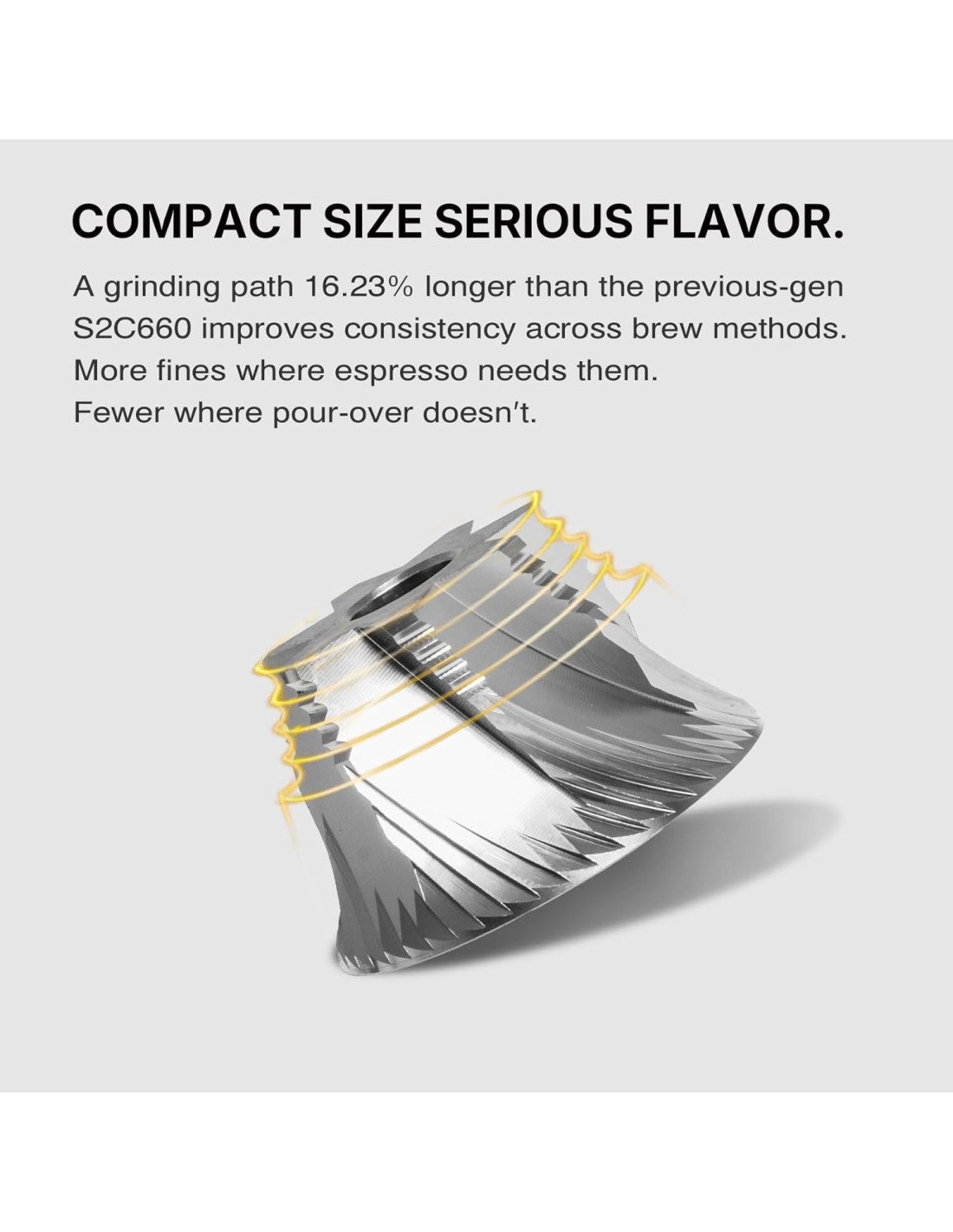 Timemore C5 ESP PRO este un espressor profesional portabil cu o nouă generație de pietre de măcinat, reglaj infinit și precizie superioară. Acesta combină puterea, eleganța și designul compact - partenerul ideal pentru prepararea espresso-ului acasă și în călătorii.