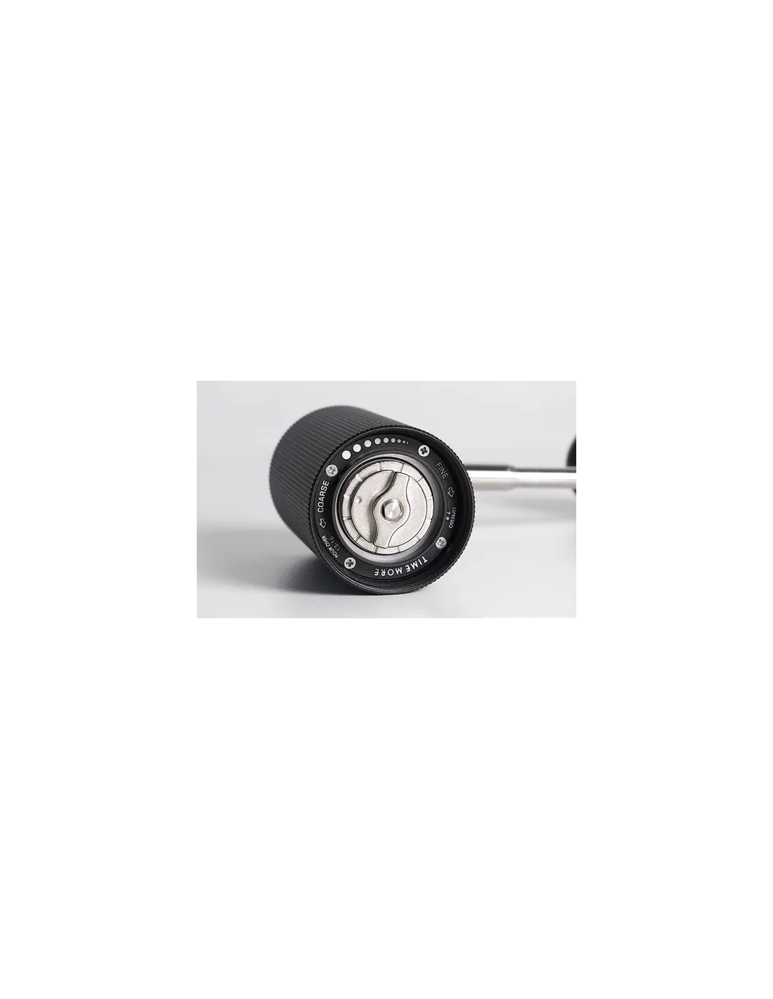 Suprafața texturată asigură că mașina de măcinat nu va cădea din mână și că măcinarea va fi confortabilă. Cu un diametru de numai aprox. 5 cm, o înălțime cu mâner de aprox. 16 cm și o greutate redusă, râșnița Timemore va satisface așteptările tuturor călătorilor. Capătul hexagonal al mânerului asigură o șlefuire confortabilă și o aplicare ușoară a mânerului rabatabil.