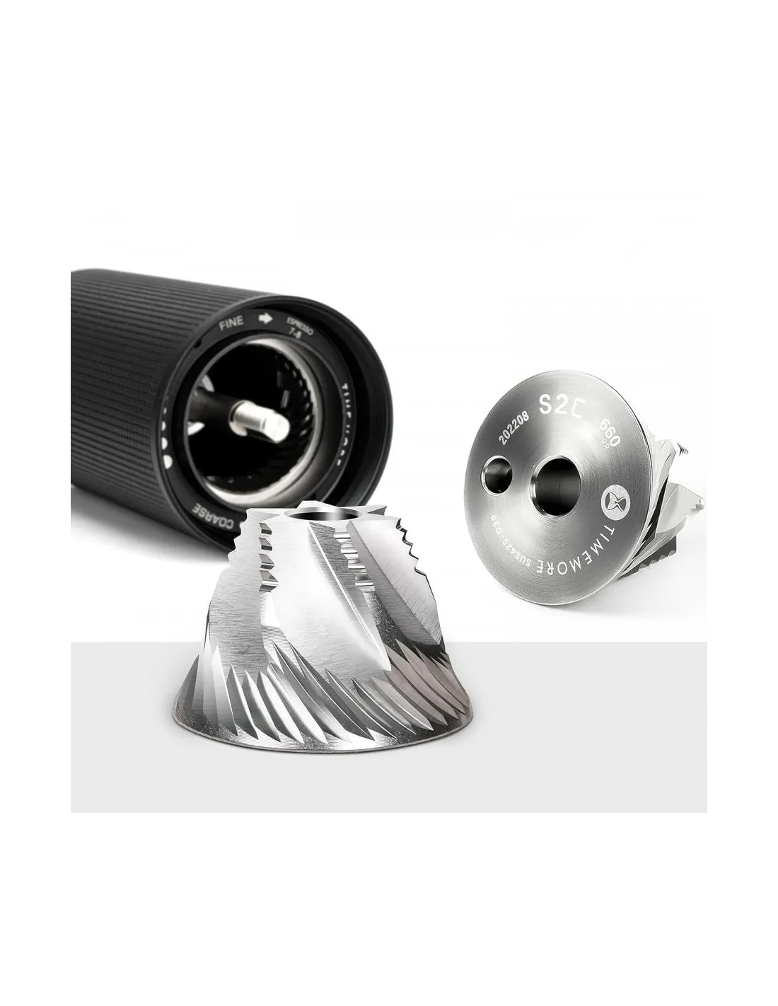 Polizorul Timemore Chestnut C3S PRO introduce o nouă tehnologie a pietrei de șlefuit "S2C" (spike to cut), în care piatra de șlefuit interioară are o nouă formă, și anume linii verticale care traversează partea superioară a pietrei de șlefuit. Această tehnologie este utilizată și în polizorul emblematic Chestnut X (dar Chestnut X are o gamă mai largă de setări ale grosimii de măcinare, pietre de măcinat mai mari și, de asemenea, o geometrie diferită) și promite o măcinare ceva mai consistentă și, de asemenea, o adecvare pentru espresso ! :) Râșnița C2 macină suficient de fin pentru espresso, dar acea măcinare fină a durat prea mult și, prin urmare, este mai degrabă recomandată pentru metode alternative de preparare a cafelei.