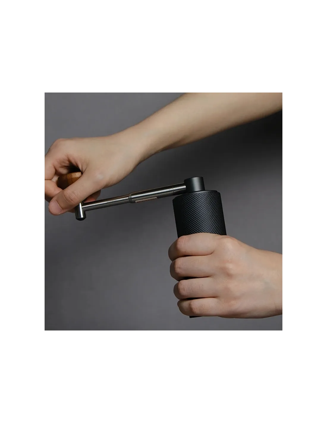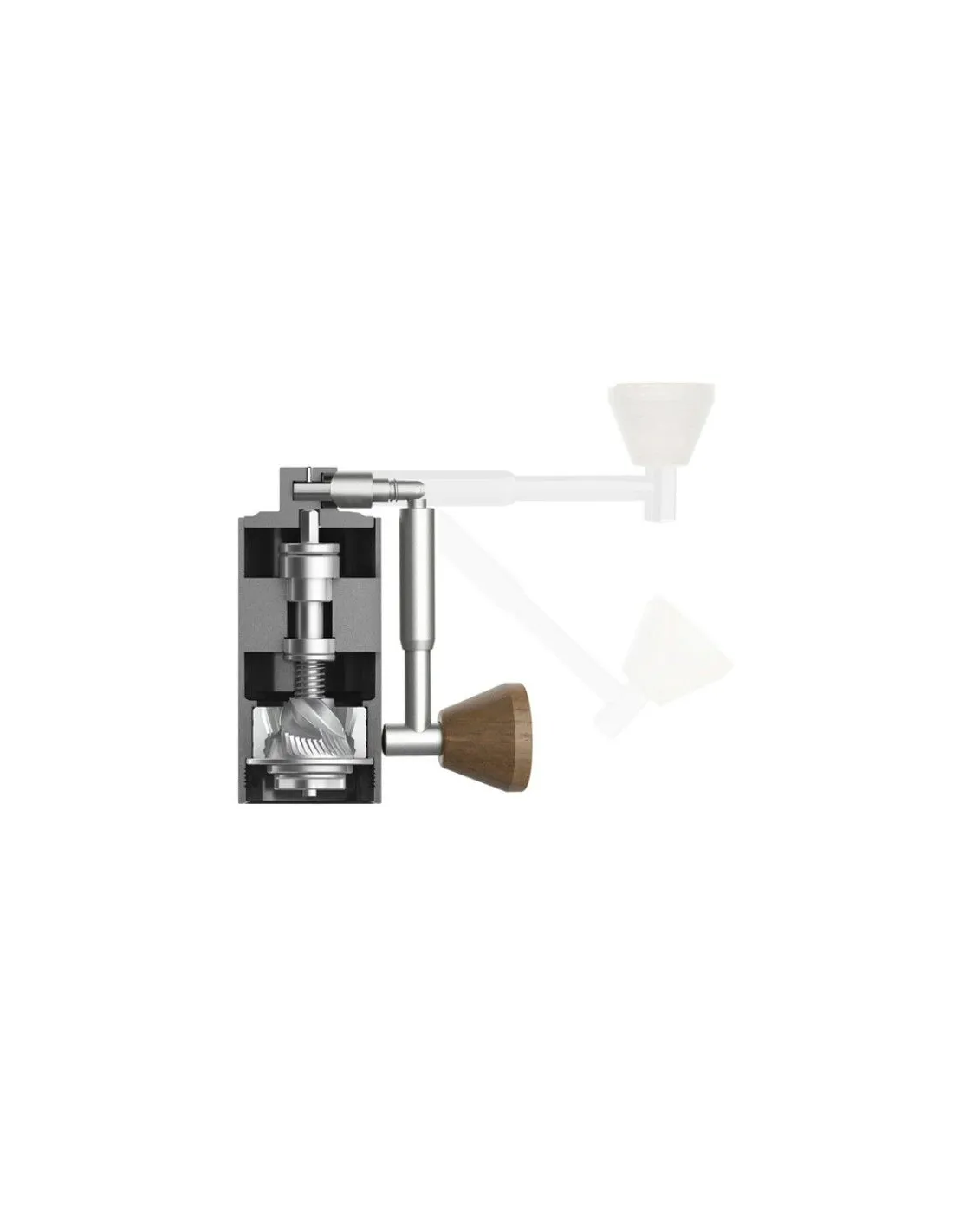 Râșniță pune, de asemenea, accent pe designul compact , motiv pentru care are un mâner pliabil unic. Călătorii vor aprecia cu siguranță dimensiunea râșniței. Măsoară doar 10 cm și este, de asemenea, foarte ușor datorită aluminiului. Structura modelată îl face ușor de prins la șlefuire, mânerul este din nuc frumos și rezistent.