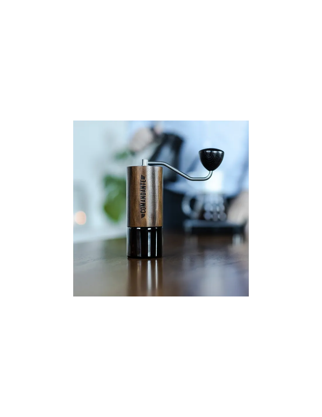 Măcinatorul are, de asemenea, un design unic. Pentru producerea râșniței au fost utilizate materiale de înaltă calitate, astfel încât nu numai pietrele de măcinat, ci și corpul, axa, manivela și micro rulmenții cu bile sunt din oțel inoxidabil. Produsele Comandante nu conțin aluminiu. În cazul în care polimerii pot fi utilizați pentru a îmbunătăți performanța, Comandante utilizează polimeri de înaltă performanță fără BPA care îndeplinesc cele mai stricte standarde de siguranță alimentară. Aceste materiale sunt proiectate să reziste la ani de utilizare riguroasă. Comandante iubește lemnul natural. Mânerul din lemn de stejar este minunat de ergonomic și frumos la vedere.