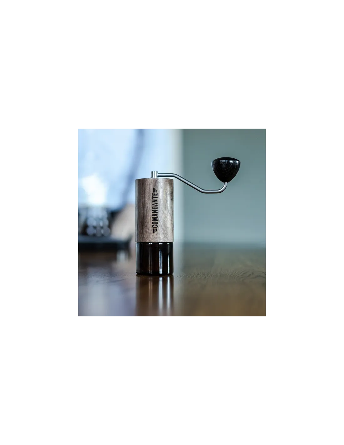 Măcinatorul are, de asemenea, un design unic. Pentru producerea râșniței au fost utilizate materiale de înaltă calitate, astfel încât nu numai pietrele de măcinat, ci și corpul, axa, manivela și micro rulmenții cu bile sunt din oțel inoxidabil. Produsele Comandante nu conțin aluminiu. În cazul în care polimerii pot fi utilizați pentru a îmbunătăți performanța, Comandante utilizează polimeri de înaltă performanță fără BPA care îndeplinesc cele mai stricte standarde de siguranță alimentară. Aceste materiale sunt proiectate să reziste la ani de utilizare riguroasă. Comandante iubește lemnul natural. Mânerul din lemn de stejar este minunat de ergonomic și frumos la vedere.