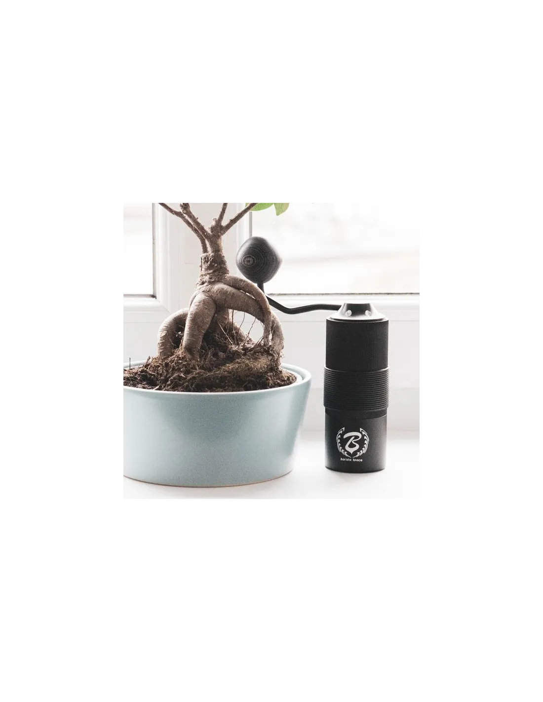 RâșnițaBarista space este fabricată din aluminiu, ceea ce o face ușoară și durabilă. O bandă de cauciuc în jurul corpului pol izorului asigură că acesta nu va aluneca în mână. Mânerul din aluminiu este curbat pentru a face șlefuirea mai ușoară și mai rapidă și este finisat cu un mâner frumos din lemn. Recipientul de jos este înșurubat în partea de sus, astfel încât să rămână bine fixat în timp ce se macină.
