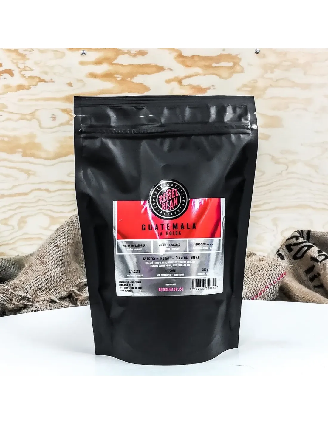 Selecție excepțională și cafea Guatemala La Bolsa proaspăt prăjită de la prăjitoria Rebelbean din Brno. Origine transparentă. Recolta actuală. Întotdeauna proaspăt prăjite.