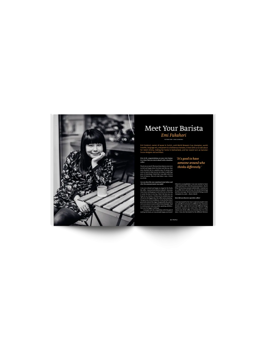 Capitolul OAMENI este un spațiu creativ, conține i un interviu cu campionul mondial de bereers Cup 2018, Emi Fukahori. Jenn Chen vă prezintă un eseu despre legăturile dintre ocuparea forței de muncă și cafeacafea dependențăí, și va fi o povestire din Brazilia - despre o zi terifiantă din viața unui profesionist. degustător degustător de cafeacare treptat își pierde gustul.