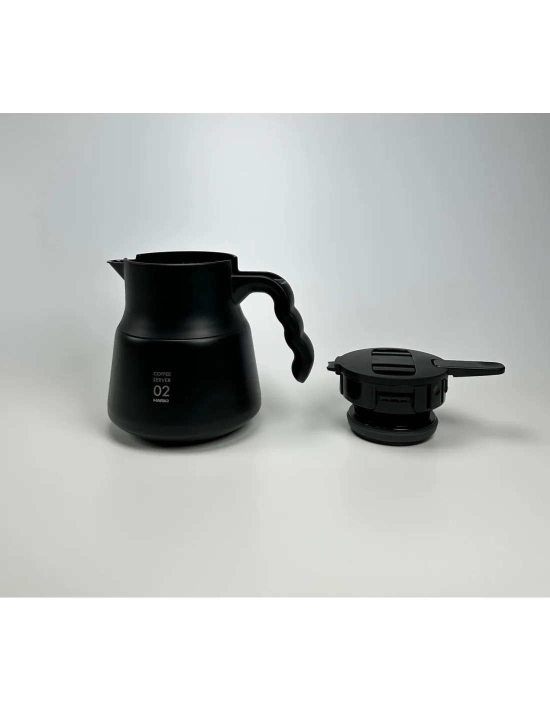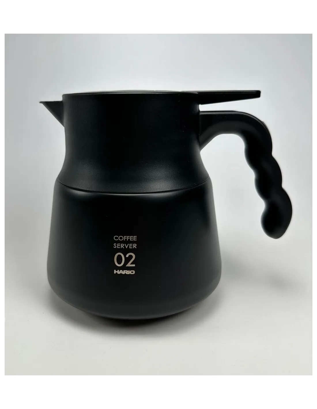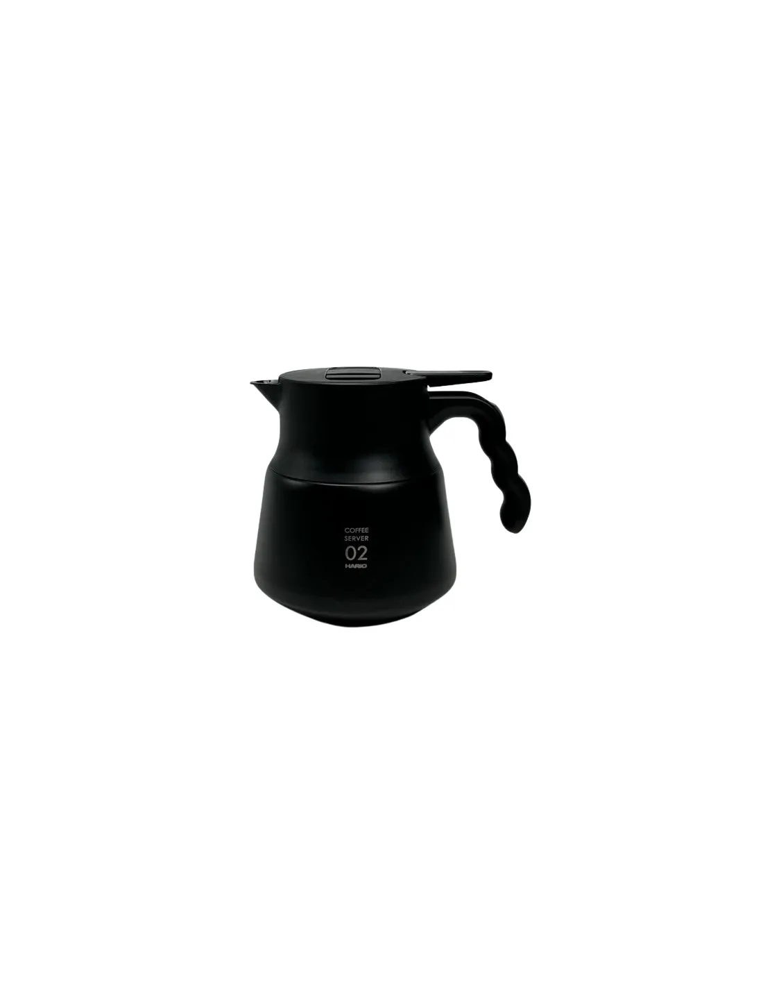 Server Hario V60 Thermo din oțel inoxidabil cu pereți dubli, sigilat în vid, pentru servirea profesională a cafelei proaspete și fierbinți sau a altor băuturi. Volum: 600ml.