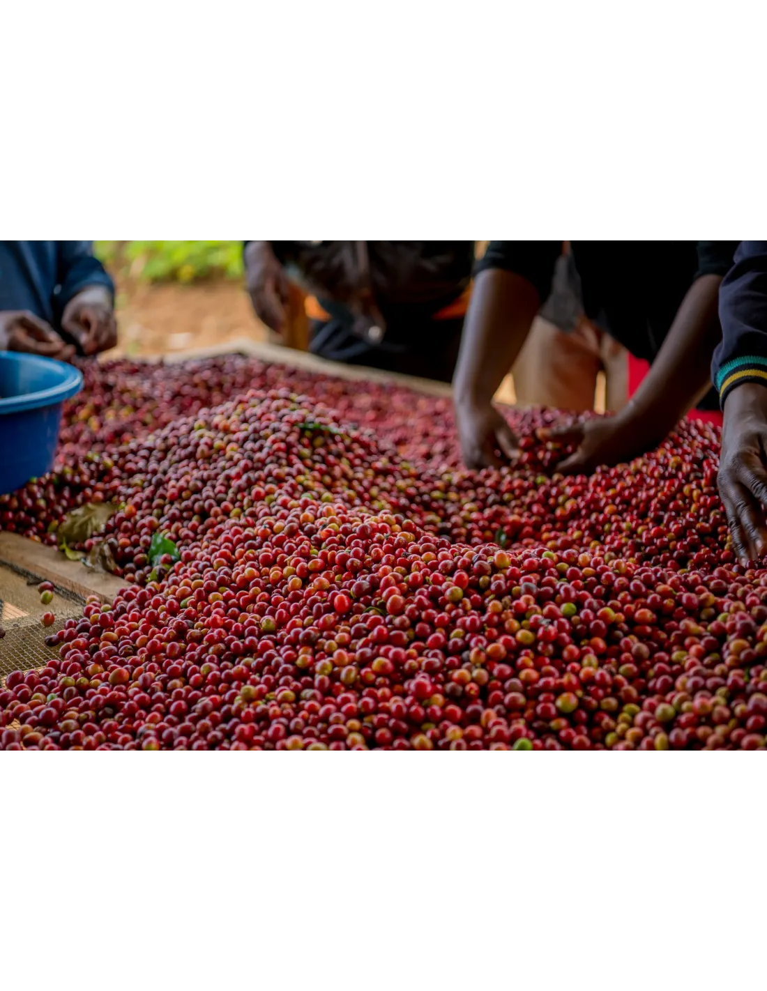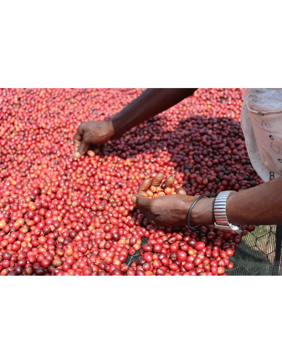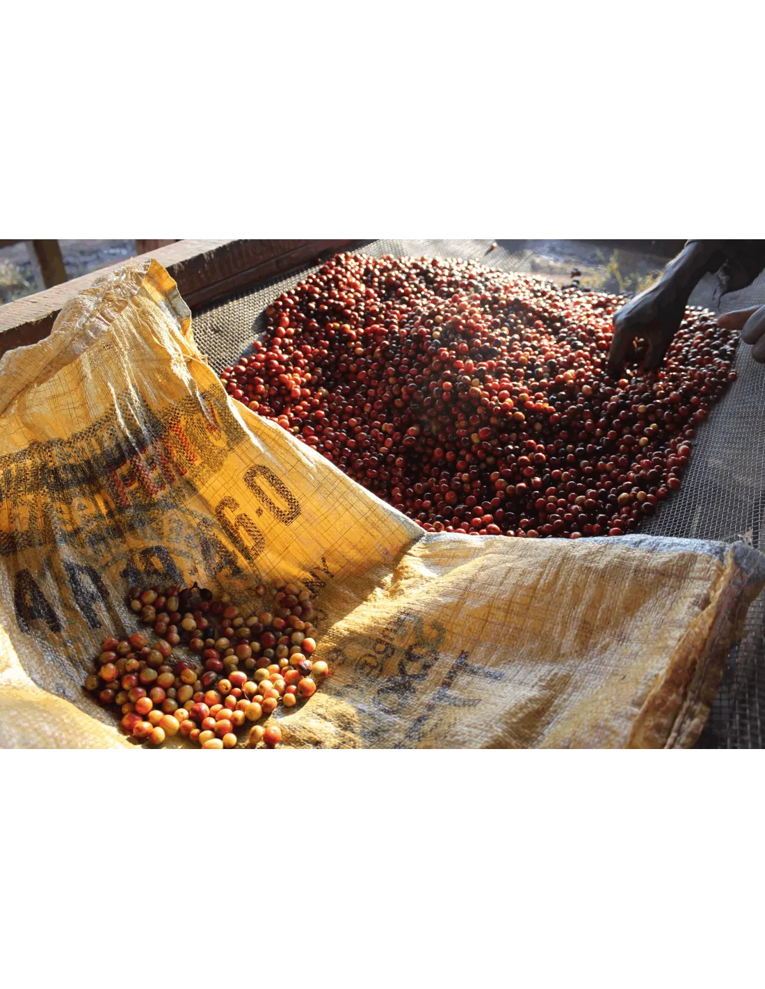 BÎn timpul sezonului de recoltare, cafeaua este culeasă manual selectiv. Cireșele sunt plutite în găleți mici pentru a le verifica calitatea. Cireșele de bună calitate sunt apoi sortate manual și se îndepărtează cireșele deteriorate, insuficient coapte și prea coapte. Cireșele sunt apoi uscate timp de 3-4 săptămâni pe mese de uscare, într-un singur strat. În timpul procesului de uscare, culegătorii trec prin cireșe în căutarea bucăților defecte. După uscare, pergamentul este împachetat și transportat la un depozit. Experții din laboratorul Greenco evaluează fiecare lot și asigură trasabilitatea pe tot parcursul procesului.