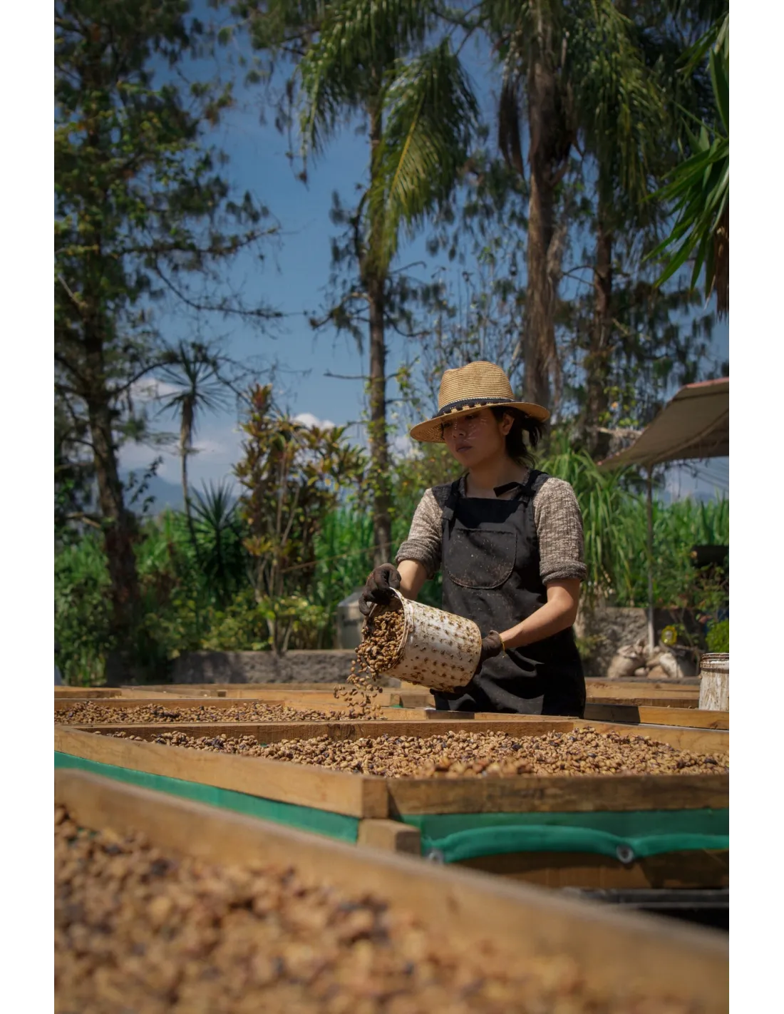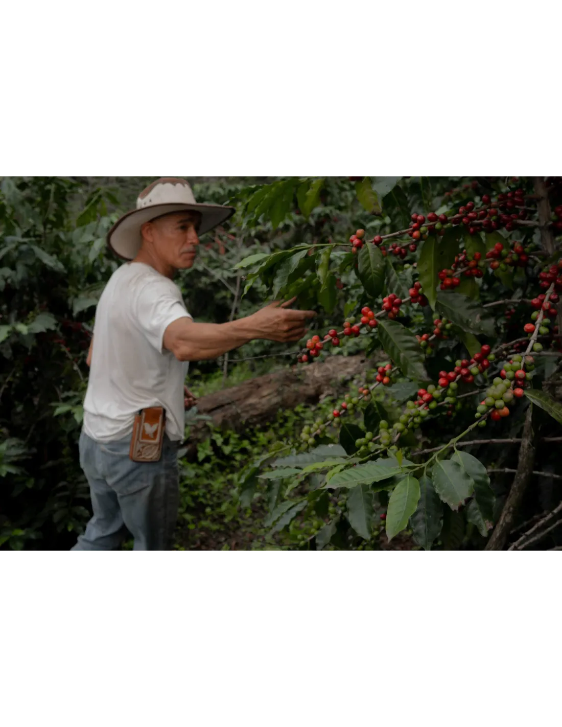 Acest lot, prelucrat prin metoda "Red Honey", este format din soiuri din Costa Rica și Columbia. Cireșele sunt recoltate selectiv și depulpate înainte de a fi așezate pe paturi africane înălțate pentru a se usca la soare. Procedeul Red Honey lasă un strat de mucilagiu pe boabe care se caramelizează la soare, adăugând o aromă profundă și dulceață cafelei. Timpul de uscare este monitorizat cu atenție și depinde de aroma și duritatea pe care boabele le capătă în timpul procesului de uscare.