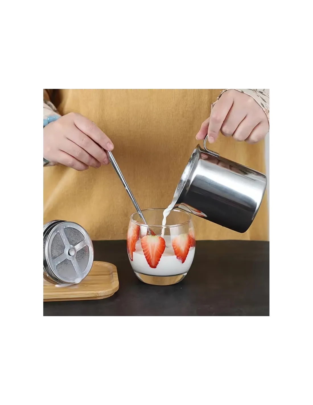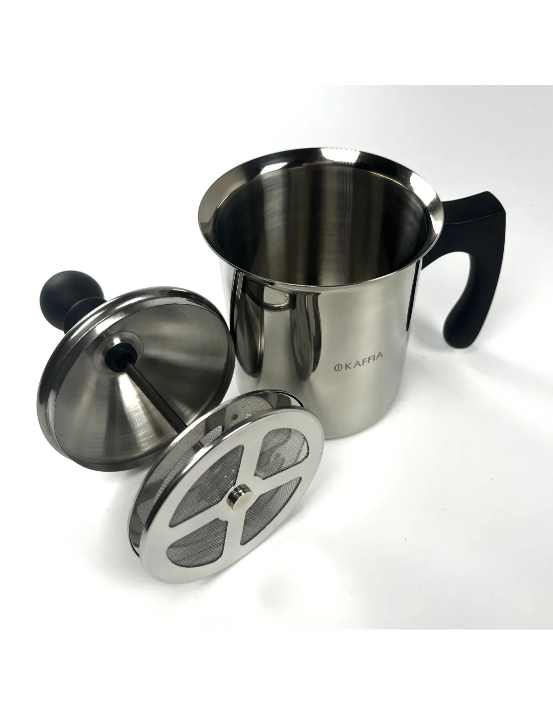 Creați o spumă de lapte frumos groasă și catifelată pentru cappuccino sau caffé latte de casă cu spumiera de lapte Kaffia Frother. Volum 400 ml.