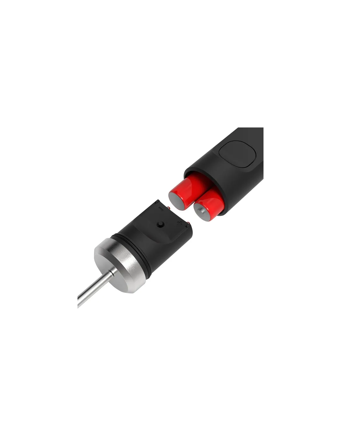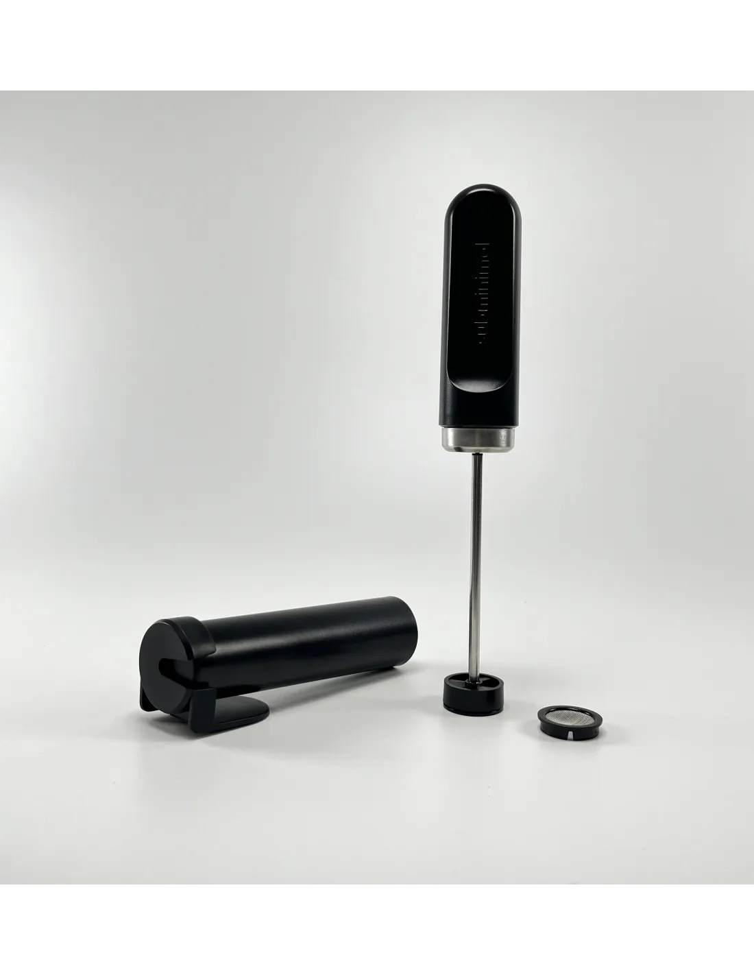 Este alimentat de două baterii AA care îi permit să dezvolte o viteză de 3000 rpm. Un capac de protecție este montat pe elice, care vine în două dimensiuni de ochiuri. În funcție de tip, se pot obține texturi ușor diferite ale spumei de lapte.