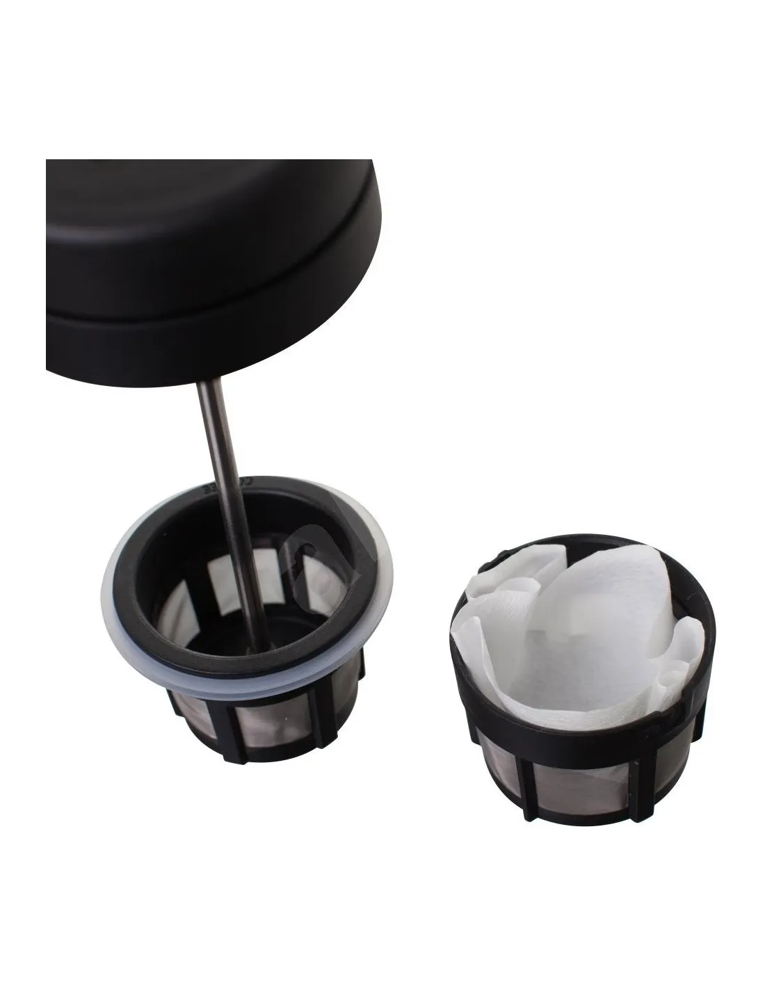 A doua inovație este modul în care este comprimat filtrul în sine, care , odată ce pistonul este apăsat complet până la fund, împiedică continuarea extracției, adică infiltrarea cafelei levigate înapoi în băutură . Spațiul tampon dintre cele două filtre separă în siguranță cafeaua extrasă.