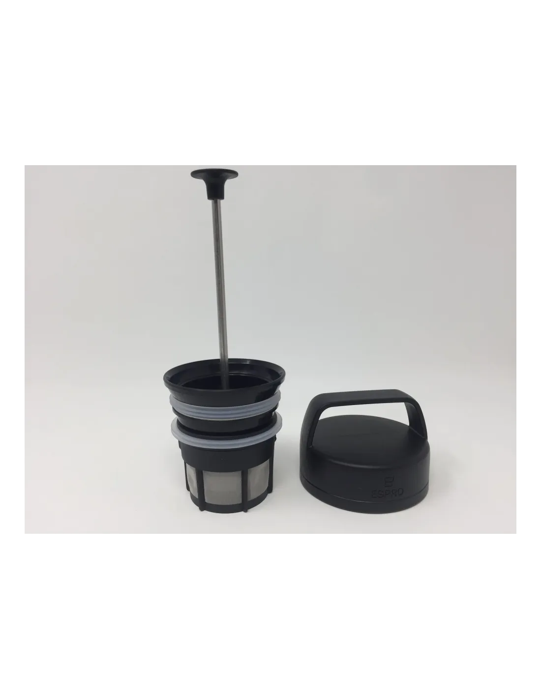 Presă de călătorie Espro din oțel inoxidabil, cu perete dublu, pentru prepararea cafelei frenchpress oriunde în deplasare. Microfiltrul dublu patentat asigură o aromă bogată fără zaț de cafea. Mai mult volum, dar mai puțină greutate ca P1 .
