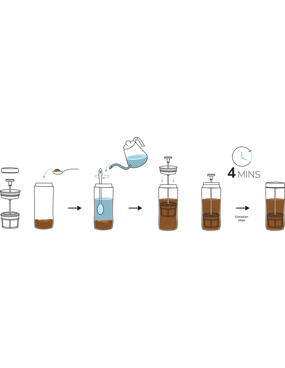 A doua inovație este modul în care filtrul în sine este comprimat, care, atunci când pistonul este apăsat complet până la fund, împiedică continuarea extracției, adică cafeaua filtrată să pătrundă înapoi în băutură . Spațiul tampon dintre cele două filtre separă în siguranță cafeaua extrasă.