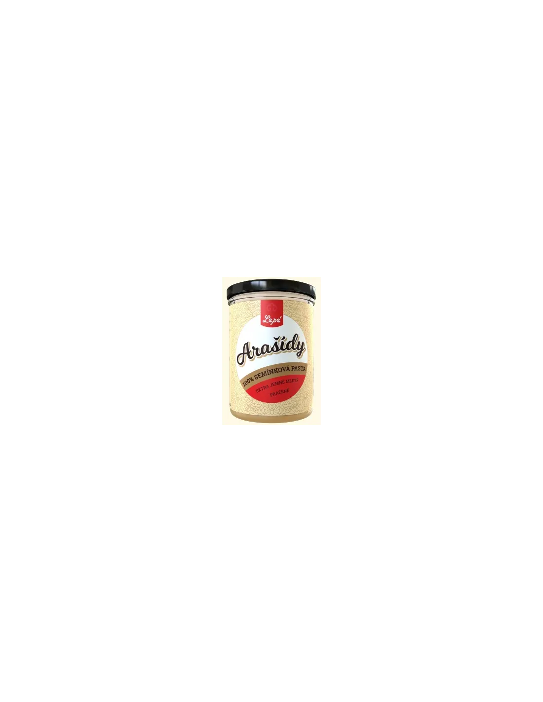 100% pastă de arahide fin măcinată, fără ulei de palmier și gluten. Potrivit pentru vegani. Perfectă pentru patiserie, clătite și coacere. Produs ceh fără aditivi.